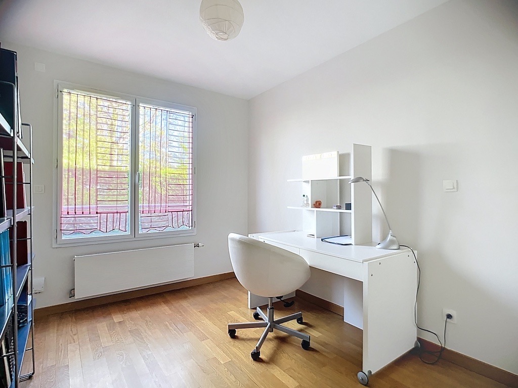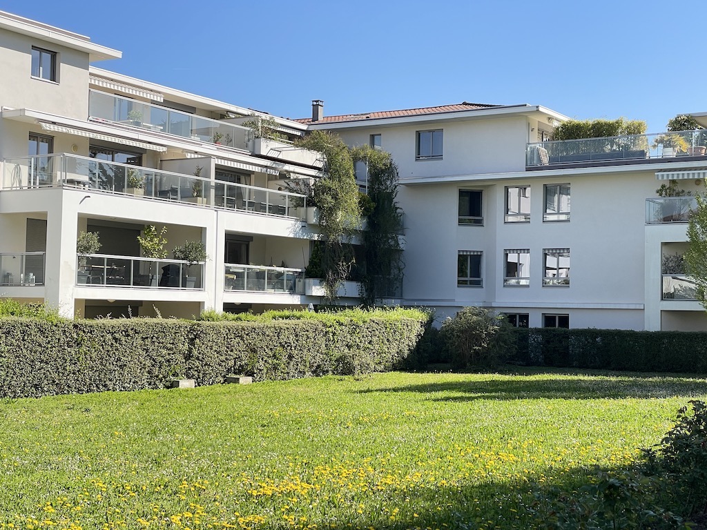 Bel appartement en rez-de-jardin de 117,64 m2 carrez avec terrasse orientée Sud et jardin privatif de 30 m2, dans résidence récente de standing avec piscine et parc arboré de 2 ha. Entrée, séjour lumineux de 35 m2 environ et cuisine équipée ouverte, 4 chambres dont 1 parentale avec salle de douche et dressing, salle de bains, 1 wc.Une cave complète ce bien.Possibilité garage double en sus : 25 K€.A 750 mètres à pied de l’école, collège, lycée Saint Joseph + gare tram train.Appartement soumis au régime de la copropriété (63 lots). Charges courantes comprenant entretien du parc, de la piscine, des parties communes et de la chaudière, eau froide.Gardien et vidéosurveillance.Conso Energie et GES : C.Honoraires à la charge de l’acquéreur compris dans le prix.Contact : 06 49 85 17 41 - mail : contact@rezdejardin.immo